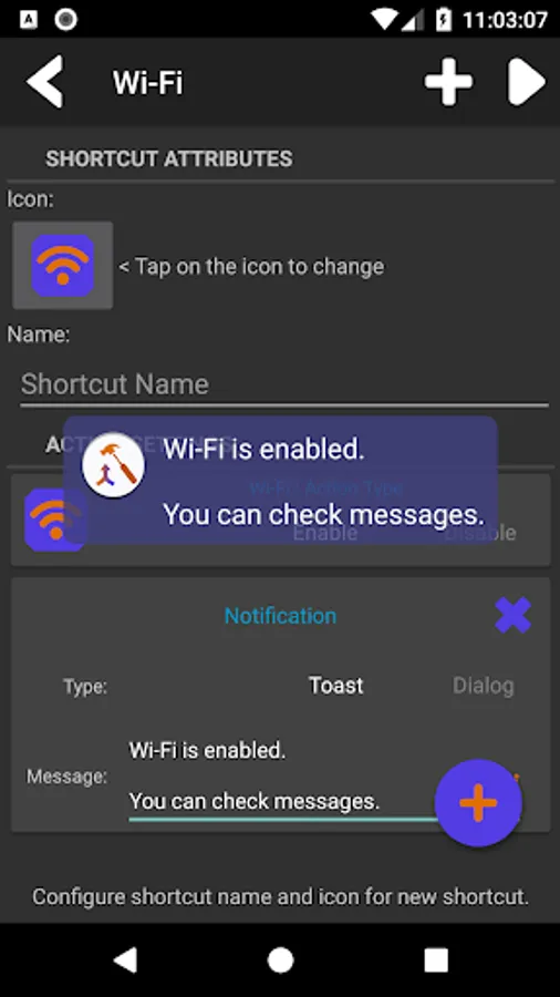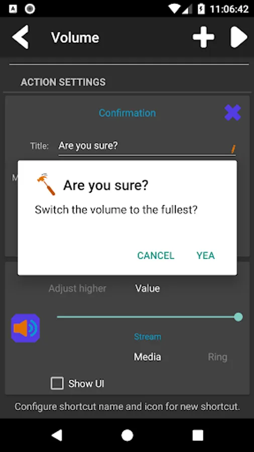 For each action the user can configure confirmation dialog (or don’t use it) and 3 different types of notifications.
