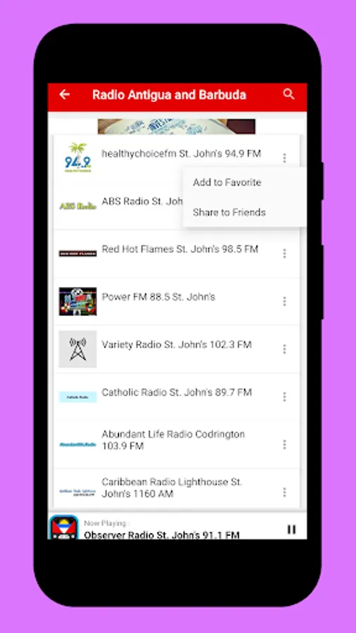 The Start screen and the interface of this application online radio stations of Antigua and Barbuda is elegant, and the most important thing is that it is very easy to use. As a user, you don't have to look for normal radio Frequencies. Just touch the name of your favorite Antigua and Barbuda radio and start listening Live.