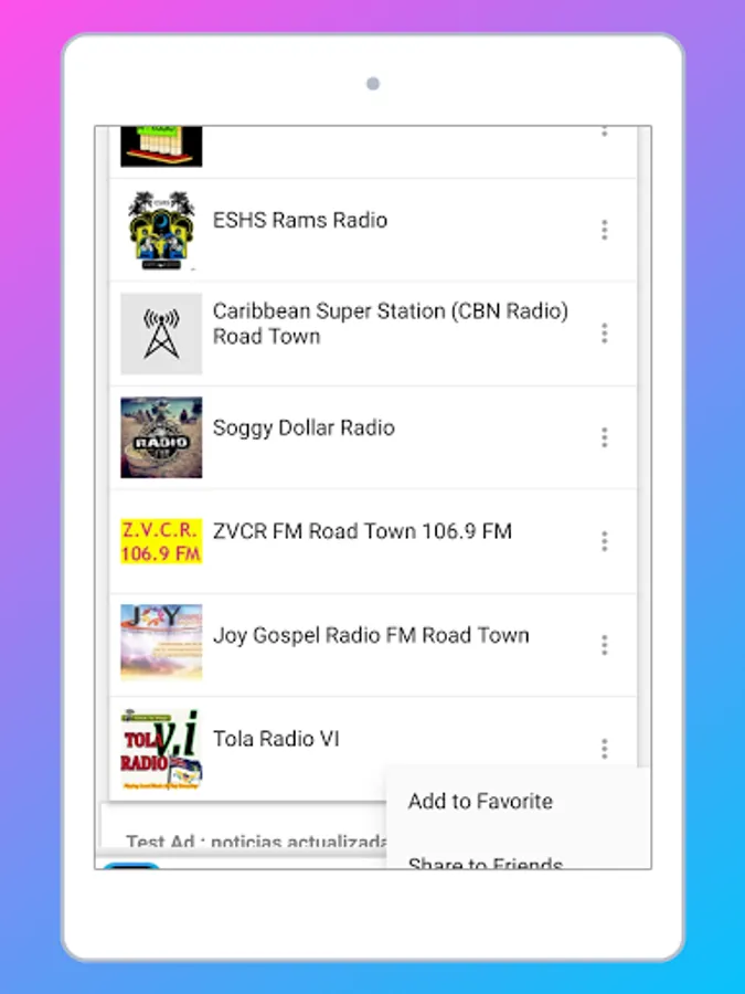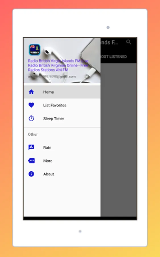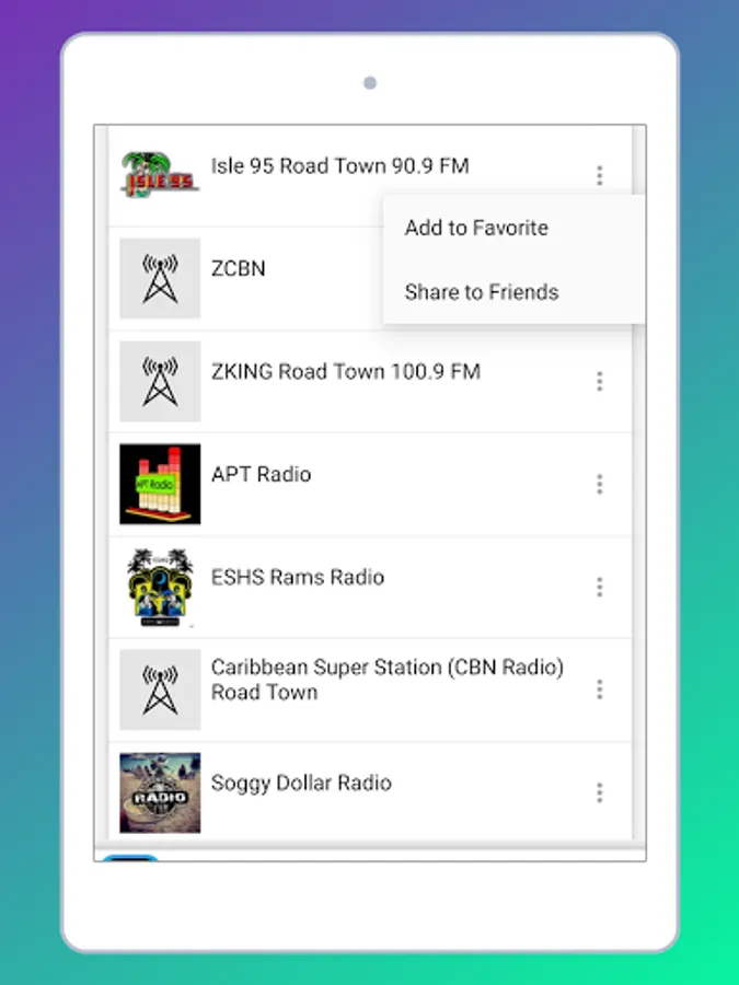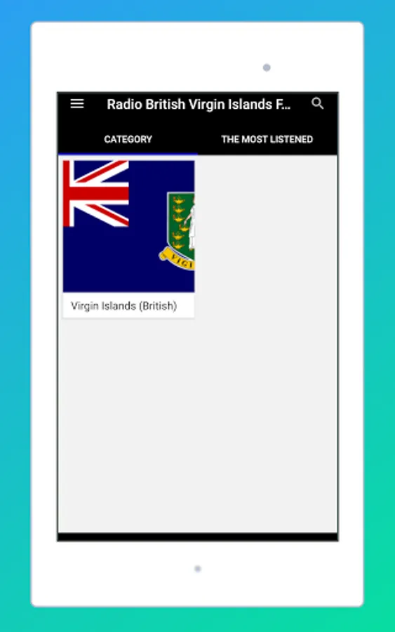 The Start screen and the interface of this application online radio stations of British Virgin Islands is elegant, and the most important thing is that it is very easy to use. As a user, you don't have to look for normal radio Frequencies. Just touch the name of your favorite British Virgin Islands radio and start listening live.