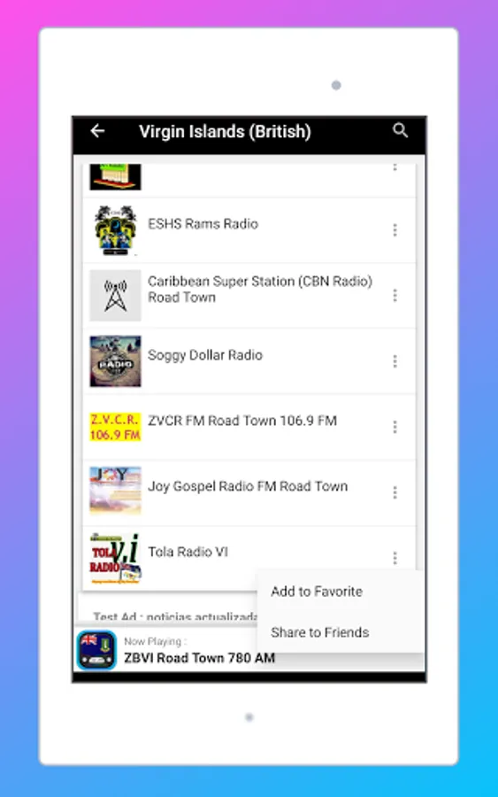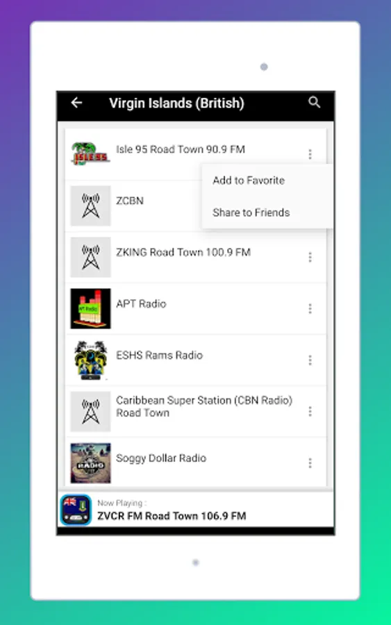 APPLICATION FEATURES RADIO BRITISH VIRGIN ISLANDS FM LIVE: RADIO BRITISH VIRGINIAN ONLINE - FREE RADIOS STATIONS AM FM: