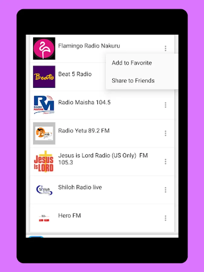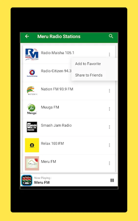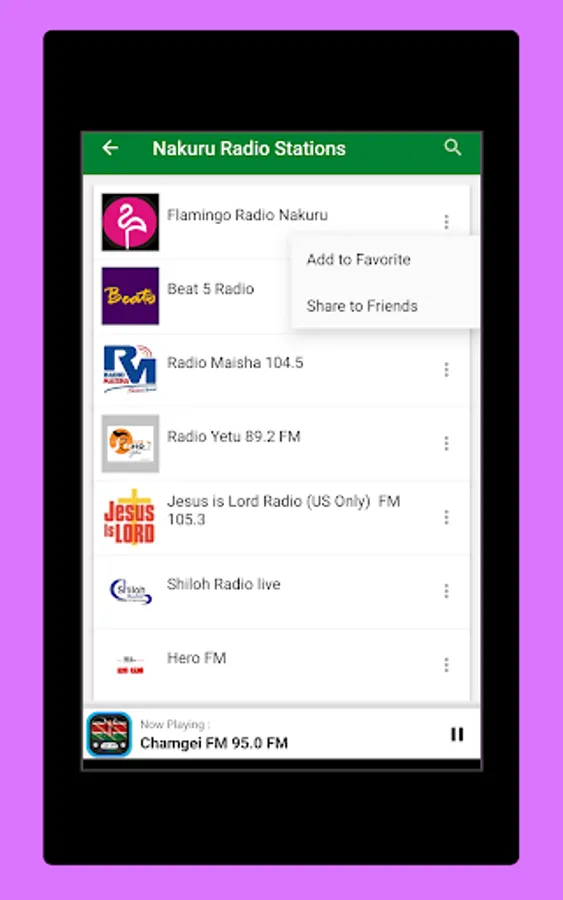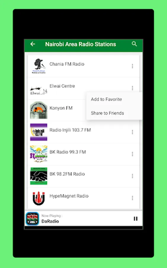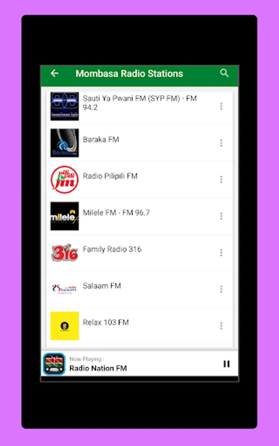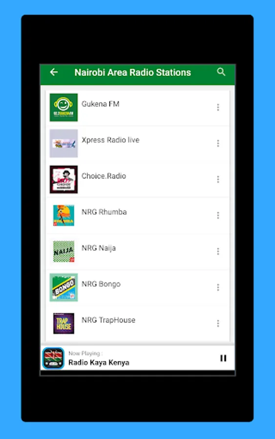 The Start screen and the interface of this application online radio stations of Kenya is elegant, and the most important thing is that it is very easy to use. As a user, you don't have to look for normal radio Frequencies. Just touch the name of your favorite Kenya radio and start listening Live.