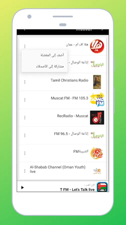 What is listening to live music Omani from your mobile? This is an application of Omani radio stations, but it uses Internet connection Instead. You can listen to Omani music, Oman songs or online music, without having to tune in or find the radio Frequency. You can even access the live radio in Oman with just one click, either FM or AM. Just touch the name of your favorite Omani radio to start listening. Apart from Oman music and songs, you can also listen to the best and latest entertainment news through our top free live Omani radio Stations.