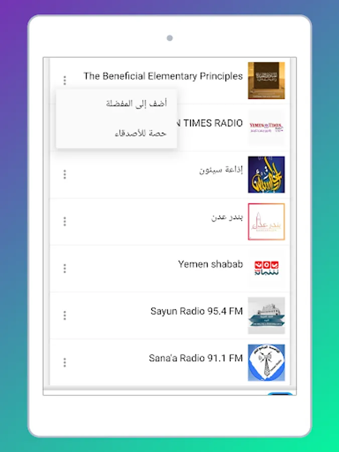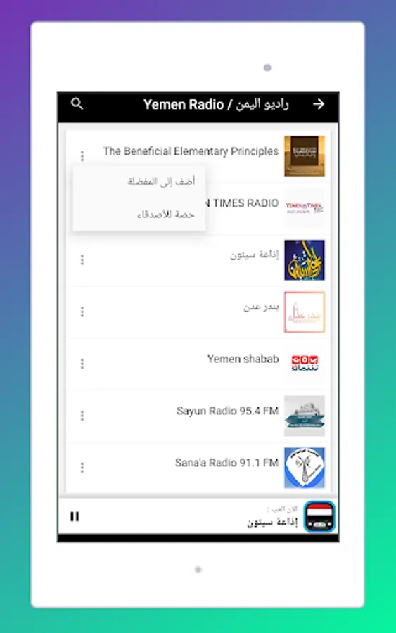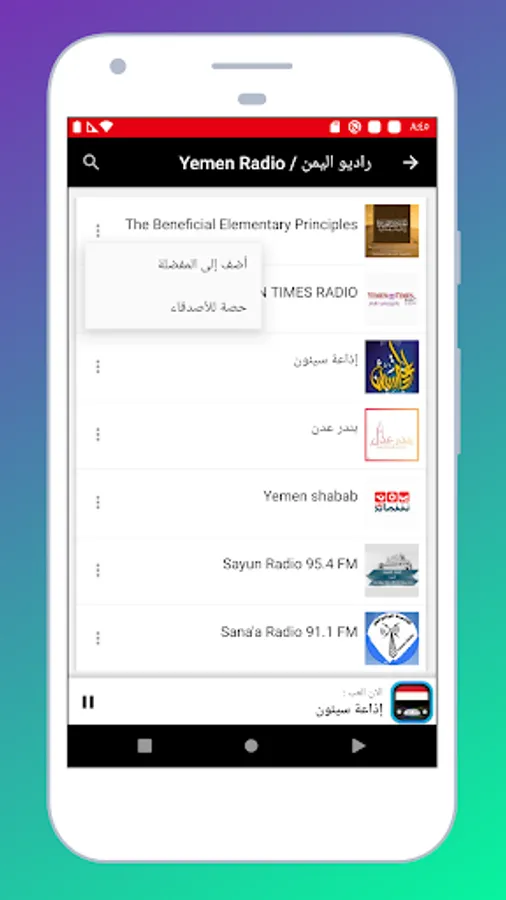 The Start screen and the interface of this application online radio stations of Yemen is elegant, and the most important thing is that it is very easy to use. As a user, you don't have to look for normal radio Frequencies. Just touch the name of your favorite Yemen radio and start listening live.