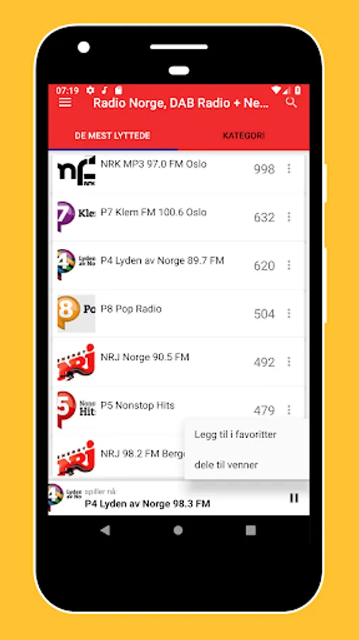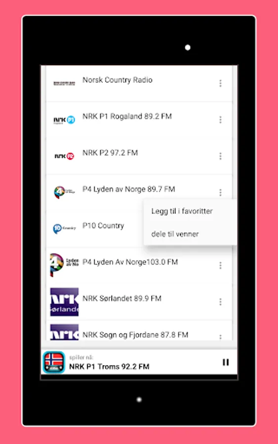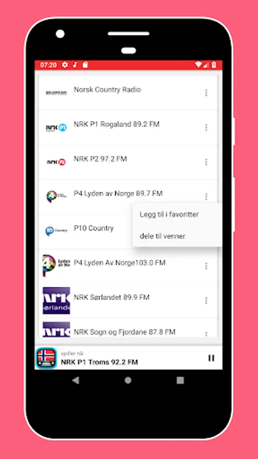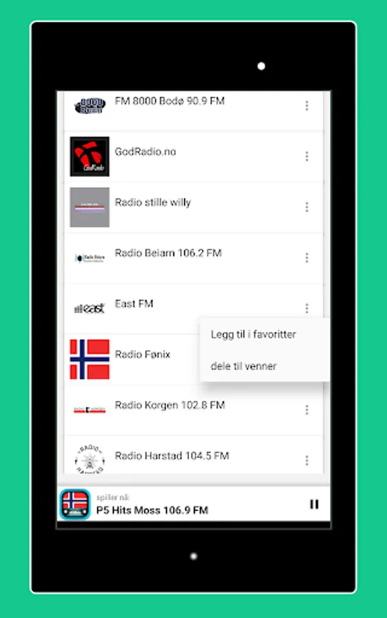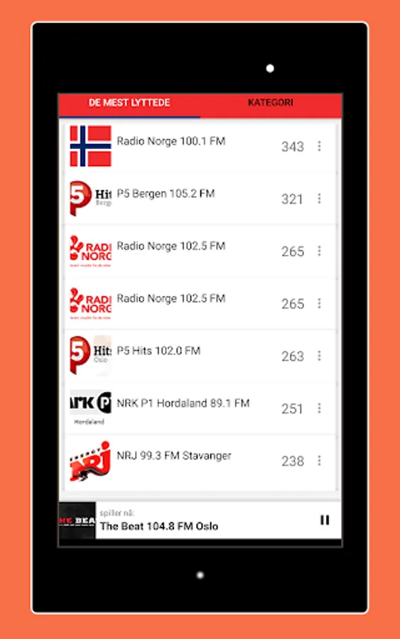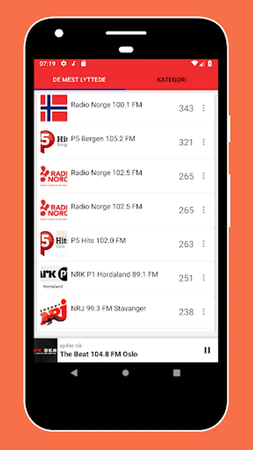 The home screen and the interface of this norwegian radio app is very cool, and the most important thing is it is very easy to use. As a user, you don’t have to look for radio frequencies like with a radio for free. Just touch the name of your favorite radio of Norway.