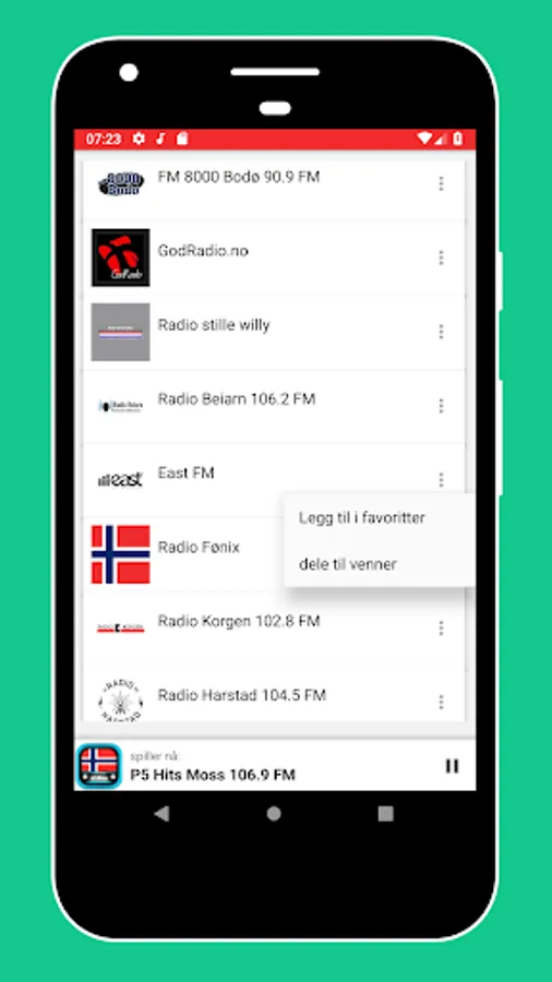 The best app to listen to norwegian music in Norway is now here! Now you can listen to radio online with through Radio FM Norway for FREE, they are all here. There are even norwegian radio stations from the rest of Norway from Oslo, Bergen, Trondheim, Drammen, Kristiansand and more.