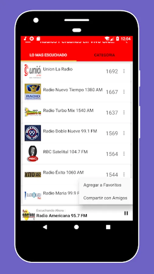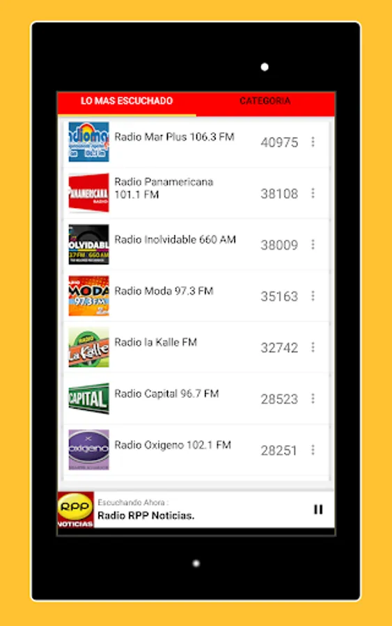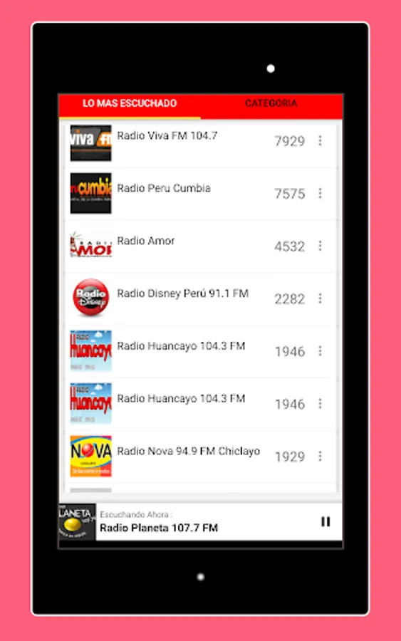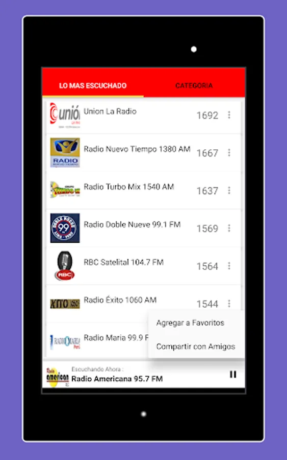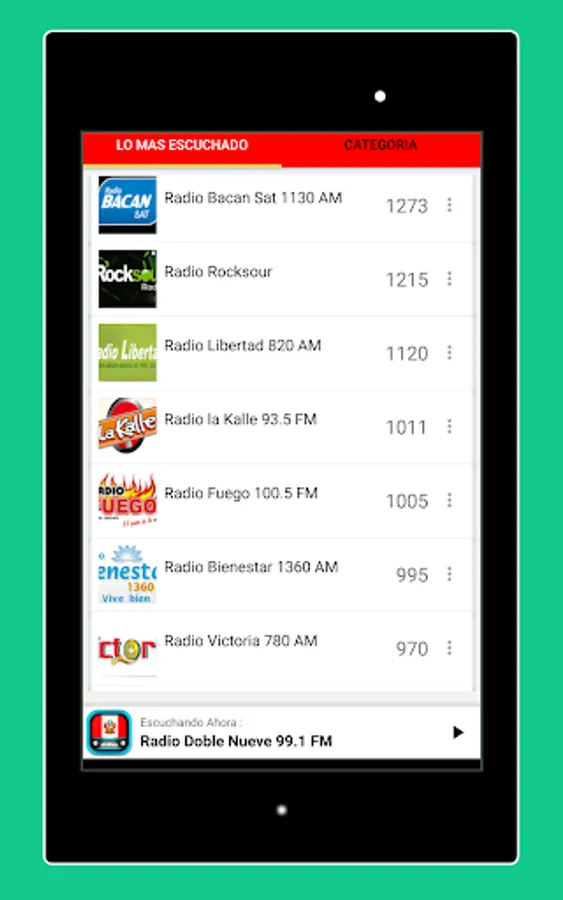 The Start screen and the interface of this application online radio stations of Peru is elegant, and the most important thing is that it is very easy to use. As a user, you don't have to look for normal radio Frequencies. Just touch the name of your favorite Peru radio and start listening Live.