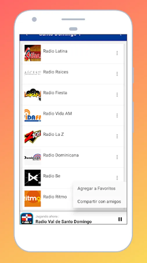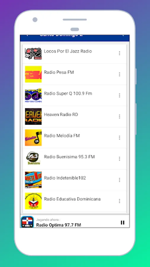 The best app to listen to Dominican radio stations is here! Now you can listen to live radios on the phone with internet connection from all over the Dominican Republic, they are all here. There are even local live Dominican radio stations like Santo Domingo and other Dominican cities.