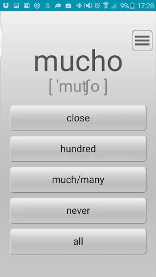 In order to communicate fluently in any language, no need to memorize thousands of words. There are statistics, under which 90% of our speech, no matter our age, educational level and the language in which we speak is made up of 300-350 words. In this application, we have compiled the most frequently used 300 Spanish words.