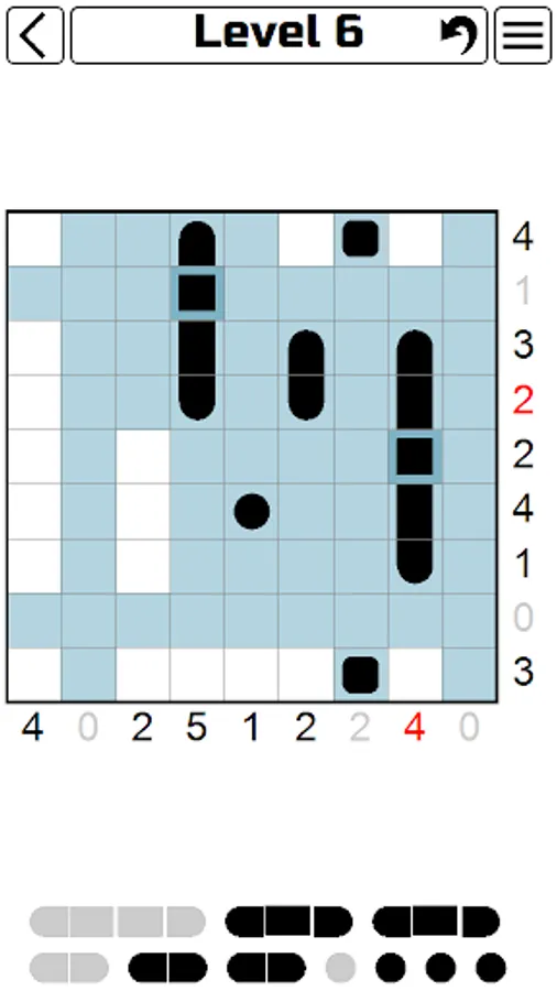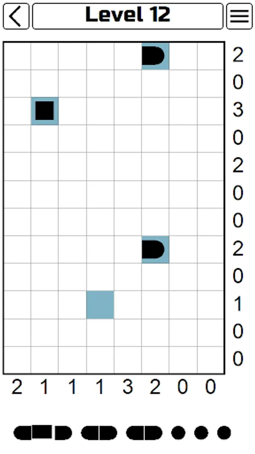 In our application, we have created 12,000 unique levels with varying degrees of difficulty. If this is your first time playing "Battleships Puzzle", try the first beginner level. Each difficulty level contains 2000 unique levels. Where level 1 is the easiest and 2000 is the hardest. If you can easily solve the 2000th level, try the first level of the next difficulty level.