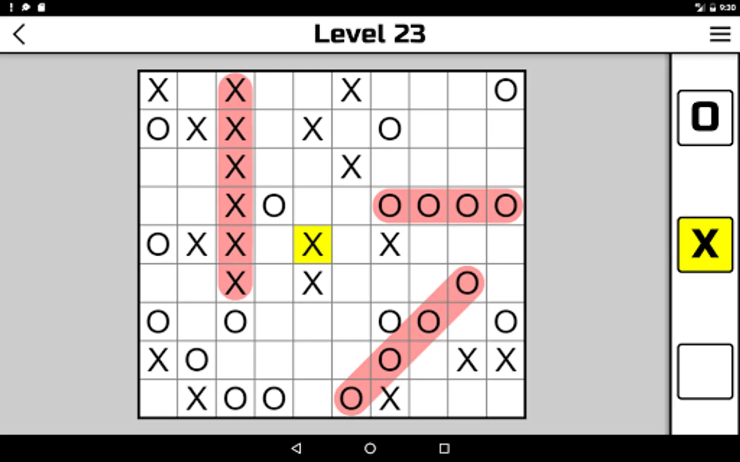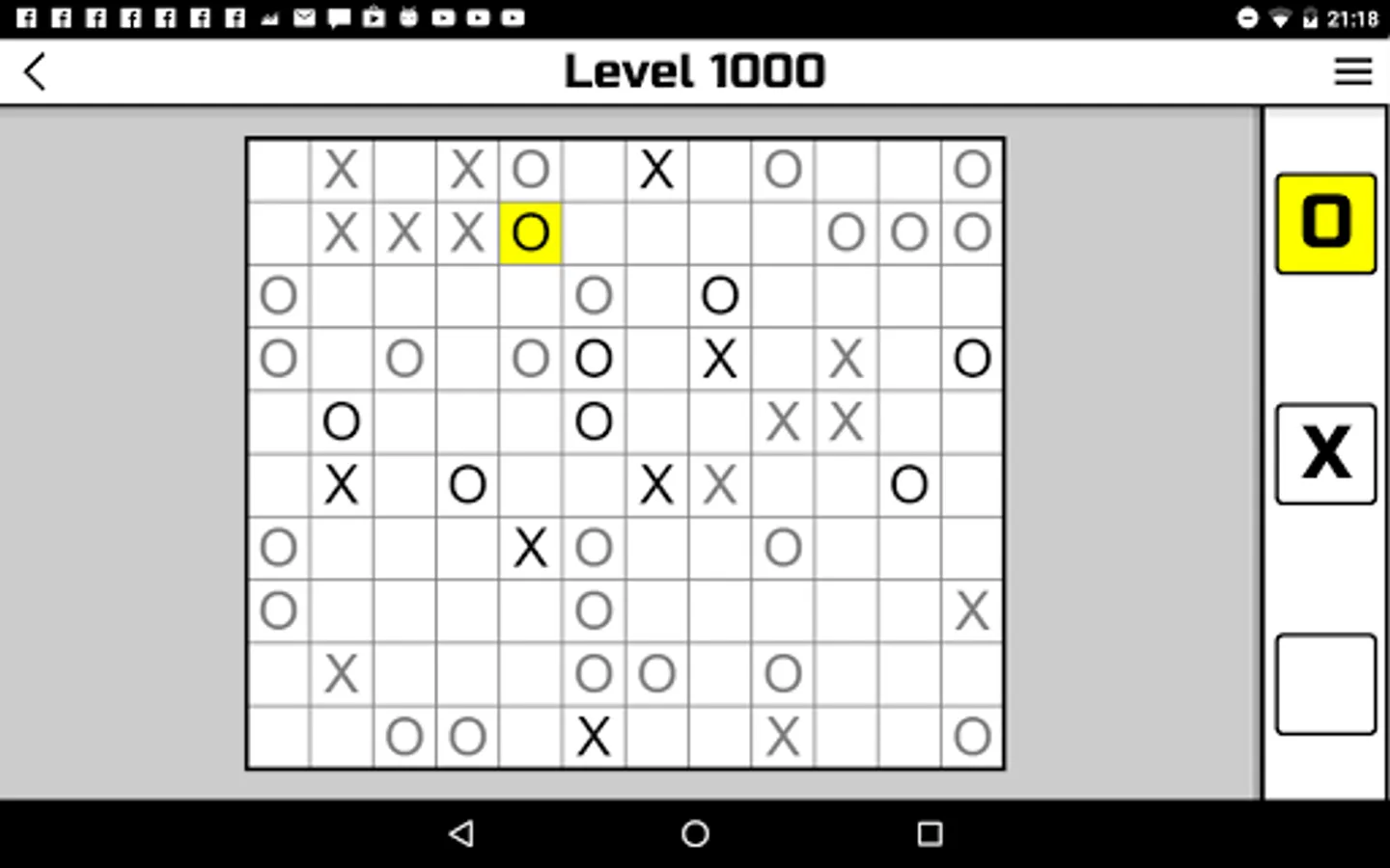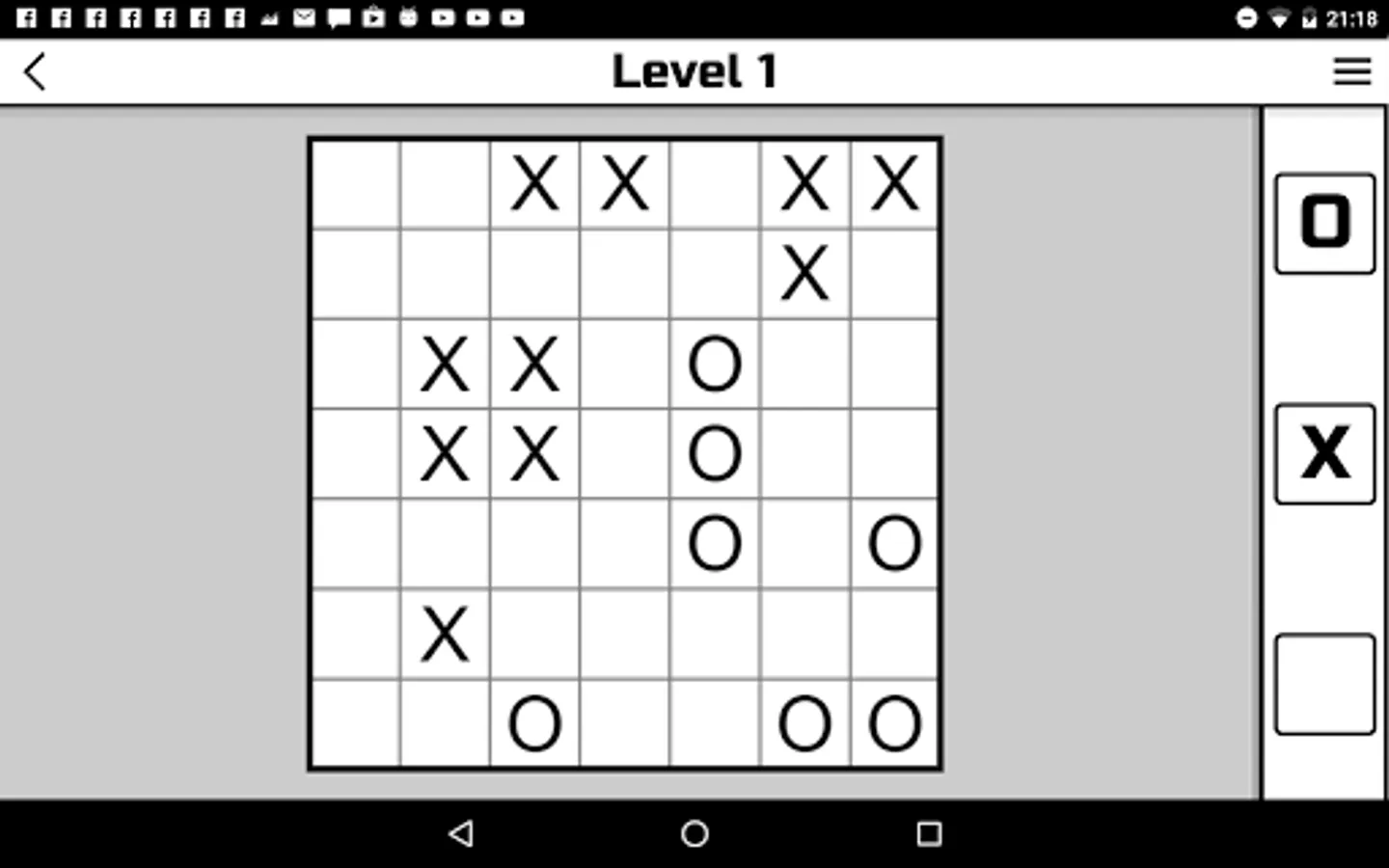 "No Four in a Row" is an entertaining puzzle. Despite the only simple rule, some levels are very difficult to solve. Solving this puzzle requires a lot of attention.