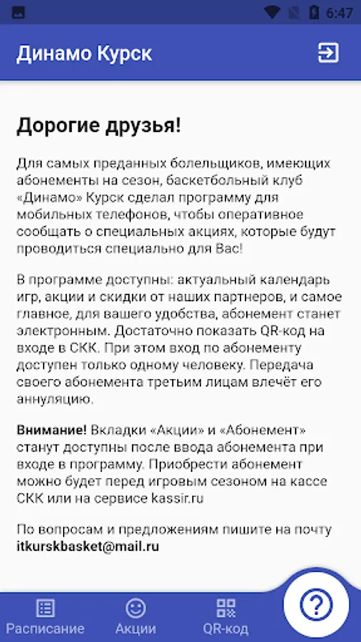 The program includes: an up-to-date calendar of games, promotions and discounts from our partners, and most importantly, for your convenience, the subscription will become electronic. It is enough to show the QR code at the entrance to the CCM. In this case, the entrance by subscription is available only to one person. Transfer of your subscription to third parties entails its cancellation.