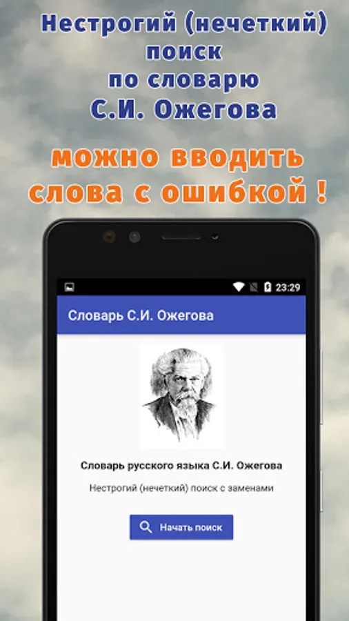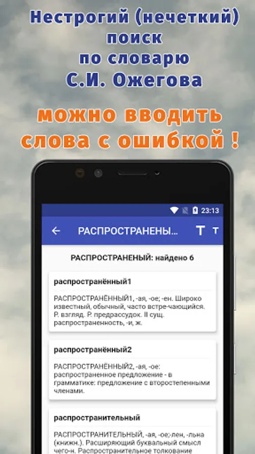 S.I. Ozhegova with the possibility of a fuzzy (non-strict) search for closely related words or words with an error
