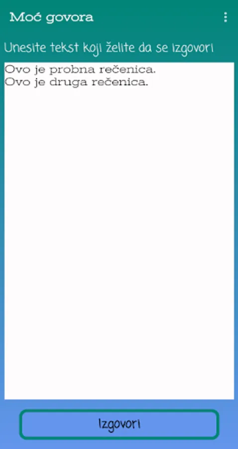 This application allows users to enter text that will be played by voice by clicking on the button. It is possible to select all voice synthesizers installed on your device.