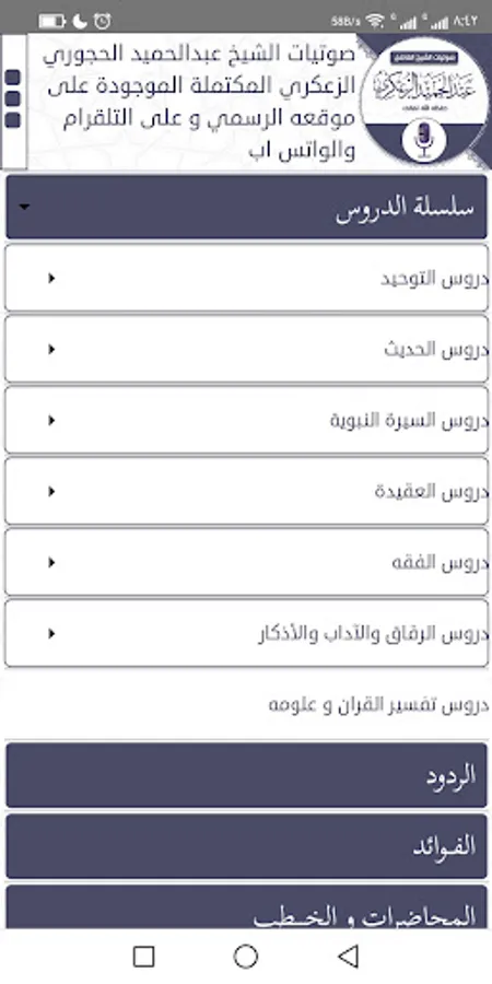 The complete audios of Sheikh Abd al-Hamid al-Hajouri al-Zakari, which are available on his official website and on Telegram and WhatsApp