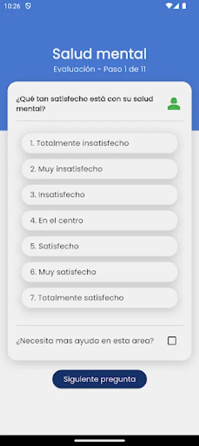 The user rates their level of satisfaction in 11 essential areas. This allows you to identify strengths and opportunities for improvement in your daily life.