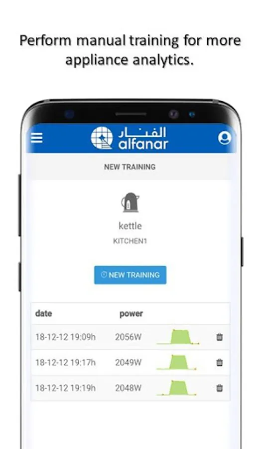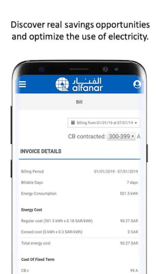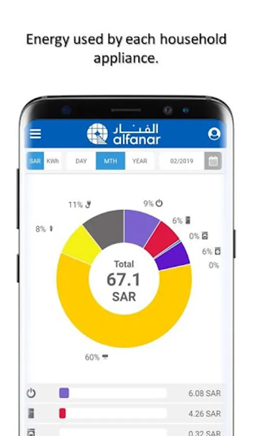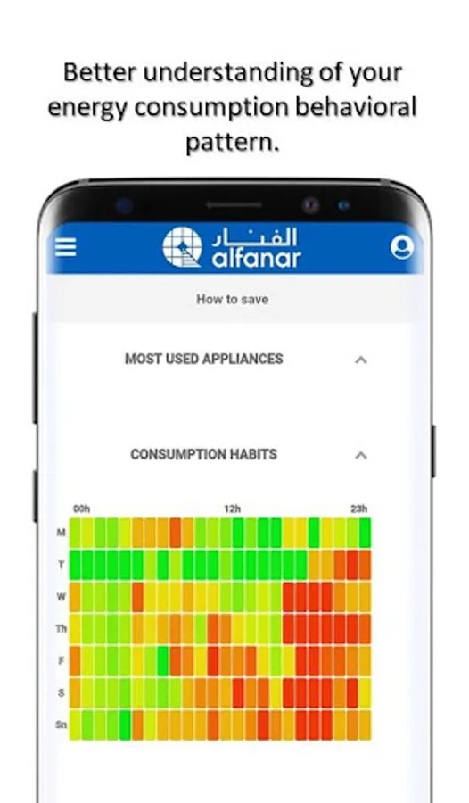 Install HomeEnergy Meter in load centers, connect it to the wireless network and start monitoring your energy consumption in watts & currency. The meter can also measure a photovoltaic production. Having multiple locations associated with the same user account, which is especially useful for more than one load center to aggregate all the consumption and generation. Identify the individual consumption of some home appliances using a single general meter, (virtual submetering). Just as a voice recognition system identifies words, alfanar Energy Meter identifies household appliances. alfanar Energy supports multi-languages including Arabic. It has different options for tariff rates and billing according to the selected country.