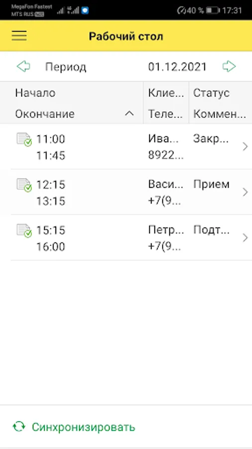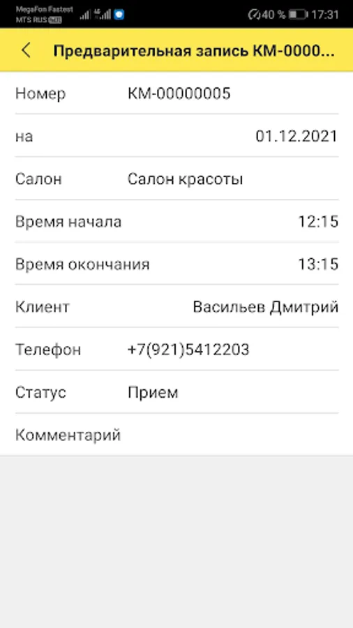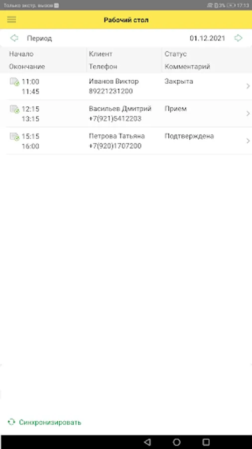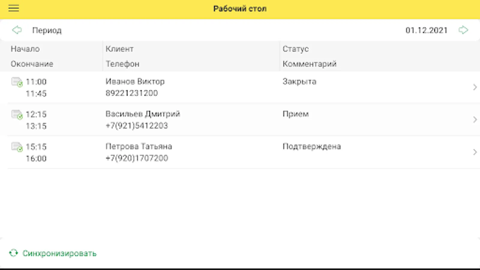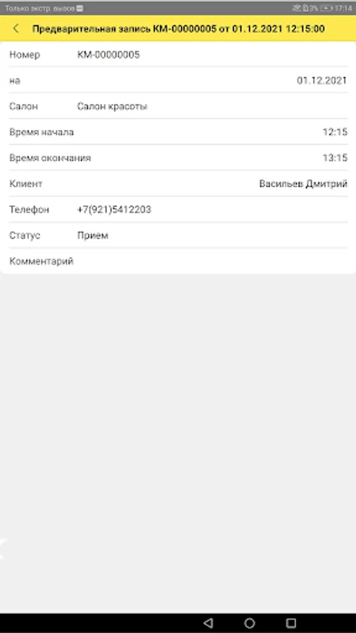 Employee's mobile application for Alfa-Nika: Cosmetology. Designed to view preliminary appointments and contact information about clients