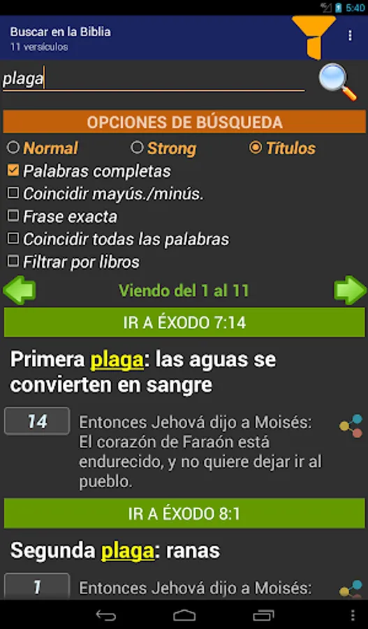 You can also search from simple to complex by words, phrases and much more .... Locate in the Word of God those difficult to find passages you can even search STRONG references where they are located as they are in the originals.