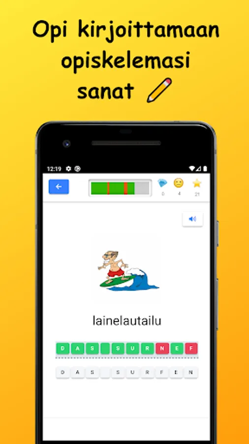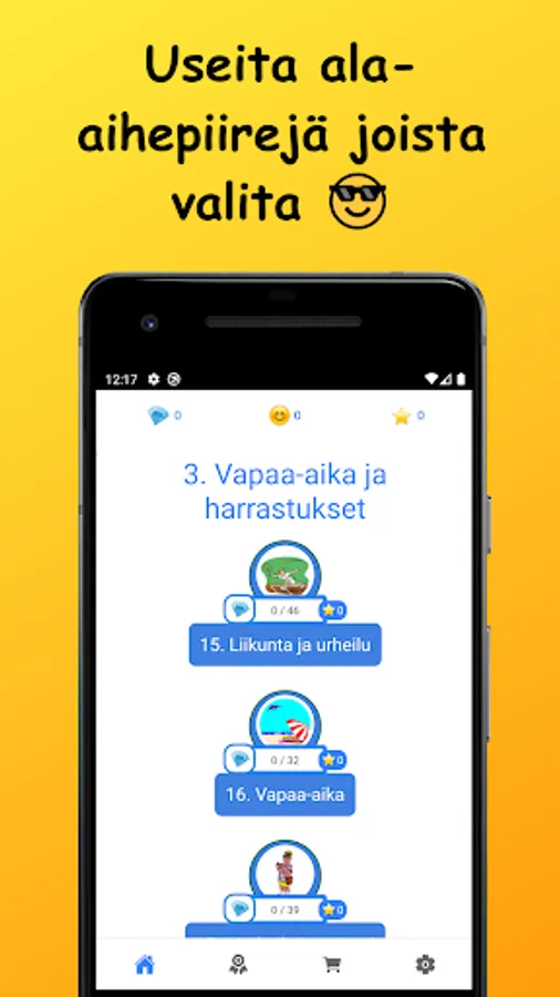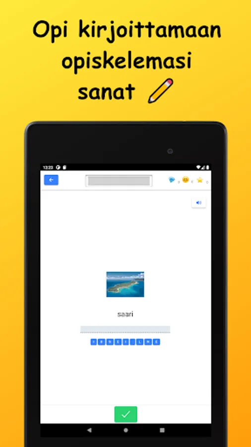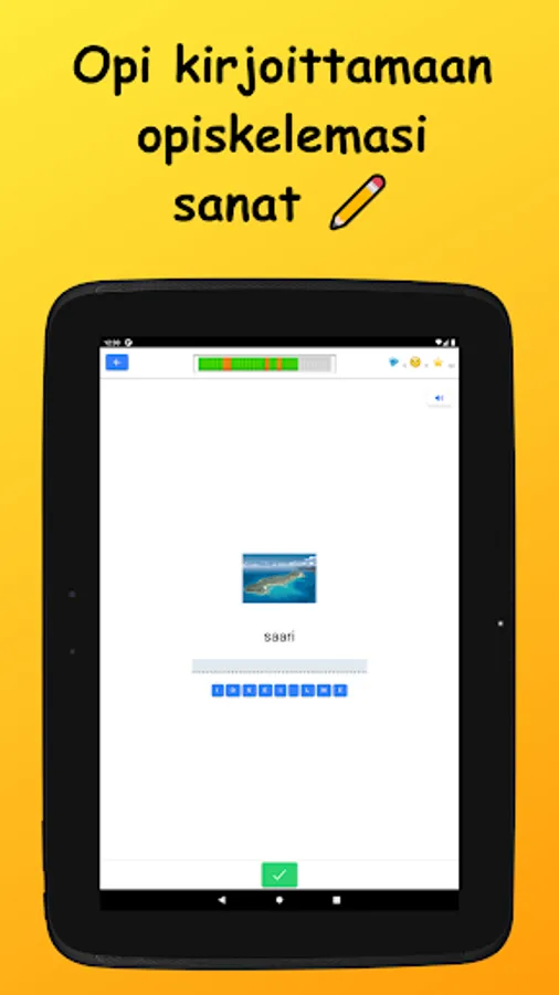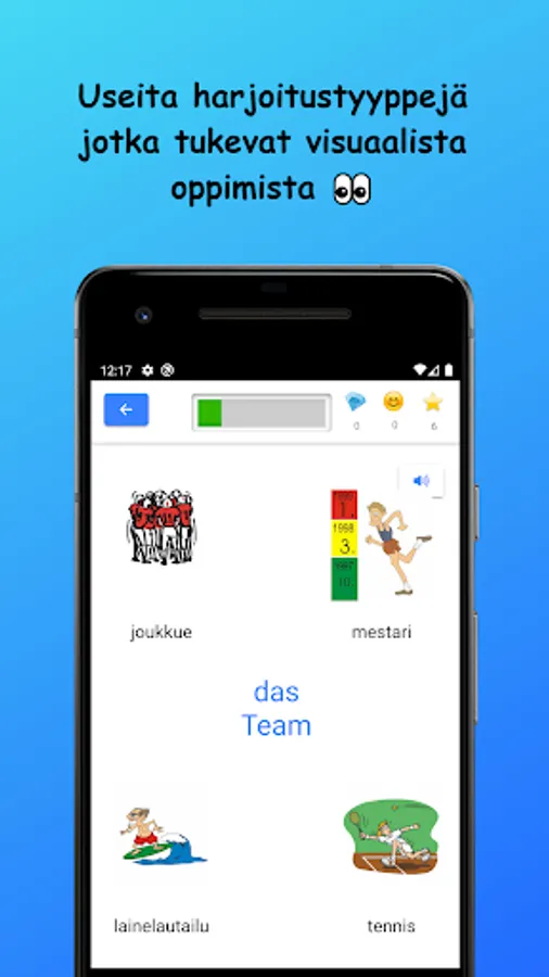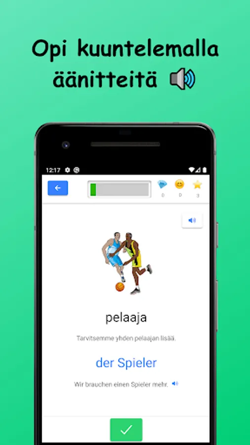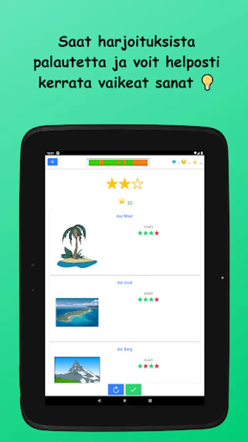 Learn German vocabulary in Finnish! The words studied in the basic subject vocabulary are divided into nine main subject areas and 42 sub-topics. Vocabulary is learned through a variety of tasks by reading, writing, and listening to words. There are also example sentences for all words.
