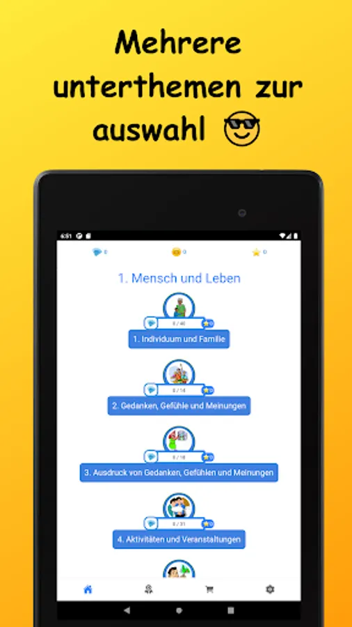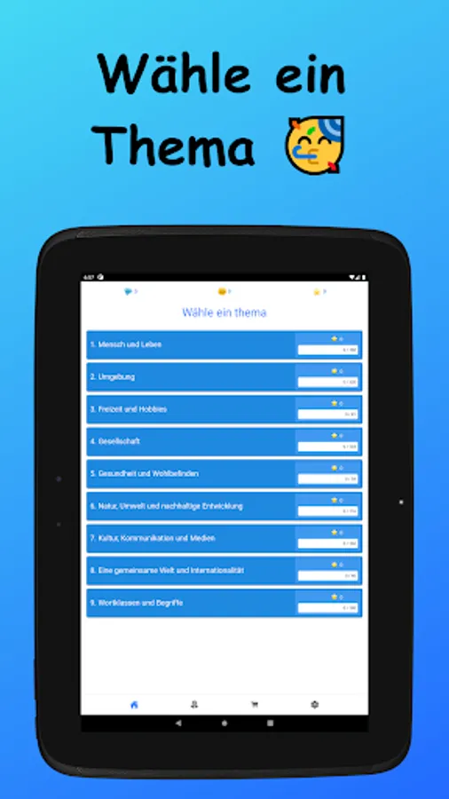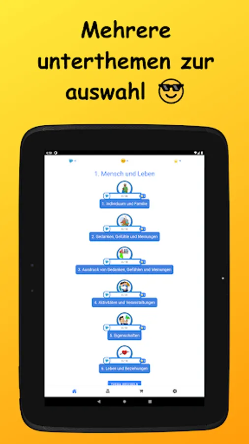 Learn English from German! In this basic level topic vocabulary, the words are divided into main topics and subtopics. You will learn the words through exercises by reading, writing and listening to audio recordings.