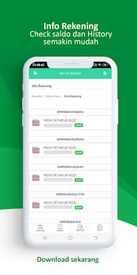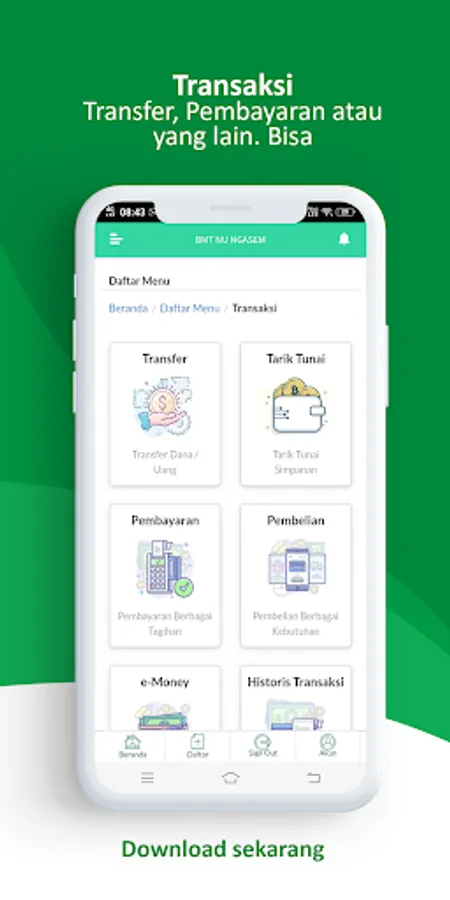 Through the application, the Customer will get various information about your Syariah Bank. Product Information, Services, Events, Promos, Gifts, Auctions, Job Vacancies, Publication Reports, Transaction Information to Financial Transactions in your Syariah Bank.