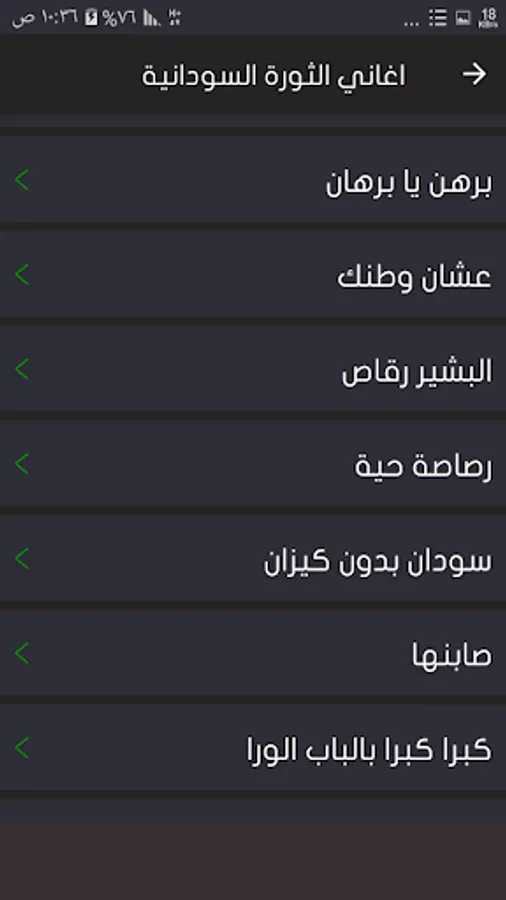 التطبيق يحتوي على بعض اغاني الثورة السودانية