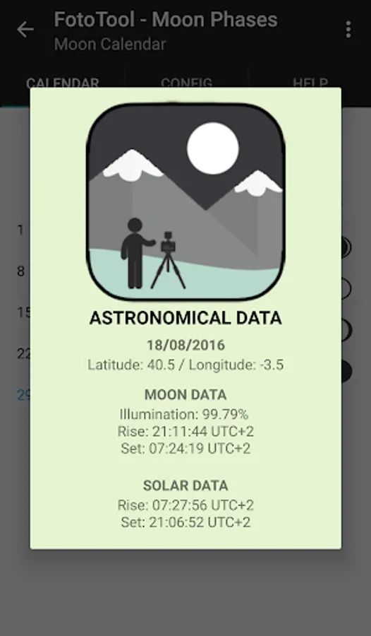 Wanna help us? Buy the AD-FREE feature!!! Retains all the features and calculations of the free app, with the advantage of removing all advertising and a better Nocturnal Mode without ads.
