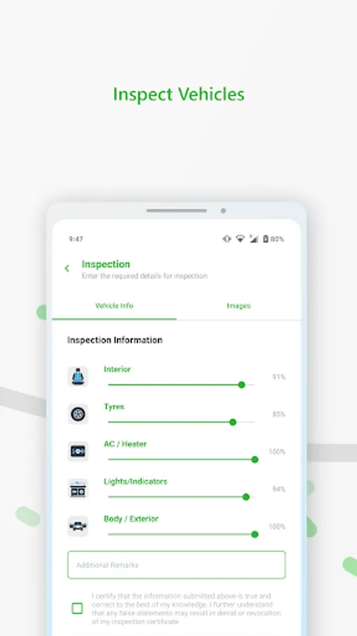 ALF Inspector is a handy yet powerful application that allows the ALF Captains to verify their vehicles without any extra effort. The process is simple. ALF Captains initiate request to verify their vehicle, ALF Inspector accepts the invitation, uploads some specific information about the Captains and their vehicles and the process is completed. The captain can start taking rides as soon as the verification is completed. No extra hassle of visiting service center at office hours. Just request an inspection when you are ready with these documents: