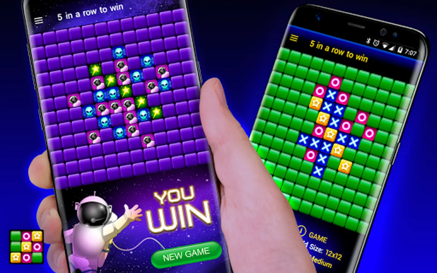 The goal of tic-tac-toe is to be the first player to get three in a row on a 3x3 grid, or five in a row in a others grids.This mega interesting Tic Tac Toe Jumbo also learn how to play this game.