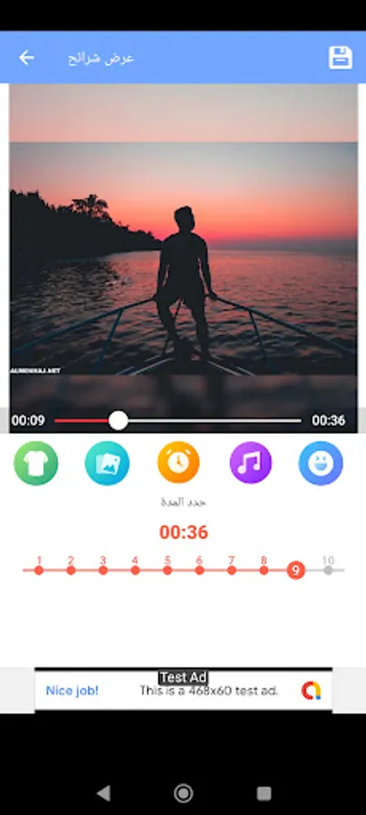 Customizable sound: two bars for adjusting the original video volume and the music volume.