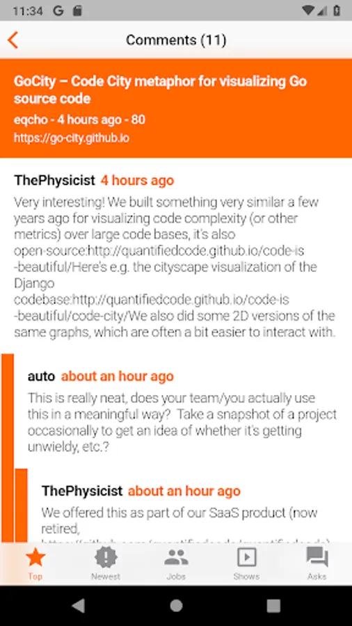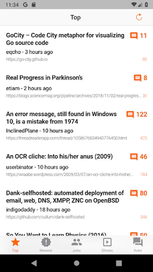 -Get latest top , newest stories, shows, asks, and jobs from Hacker News