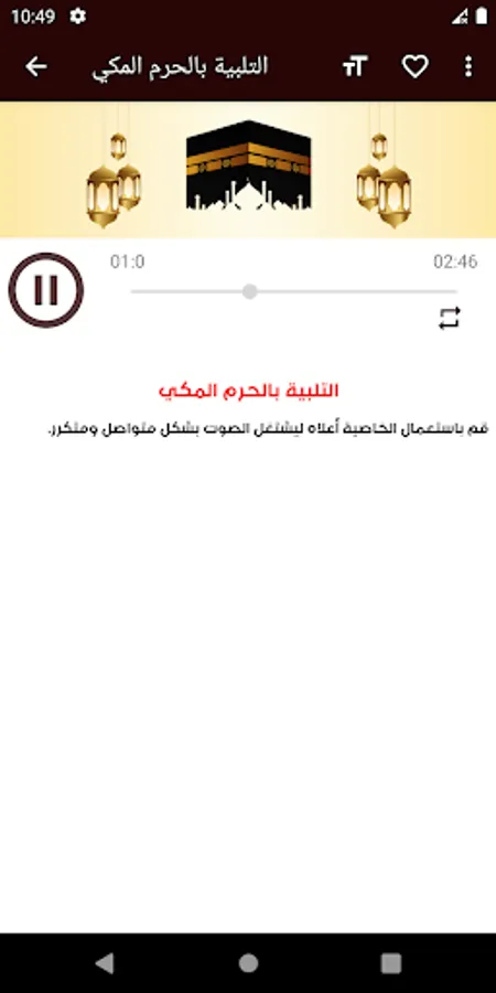 This application will enable you to listen to the fulfillment of the pilgrimage without the net, by repeating, O God, at your service, at your service, there is no partner for you.