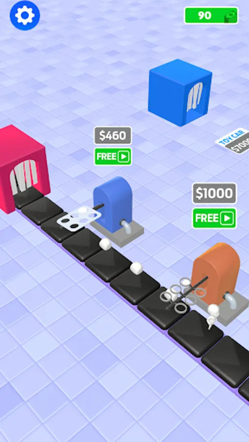 Starting from a small factory, Products are packaged and sold. Use the money to upgrade. The higher the level, the faster the laying speed and the higher the price. Open a new production line and fill your boxes.