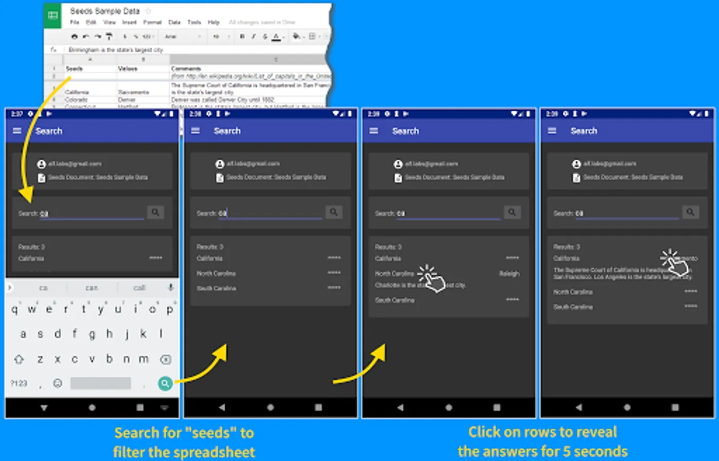 You can then search for seeds using a simple filter and the app displays the corresponding values but initially hides them till you individually click on them to reveal them for a few seconds.