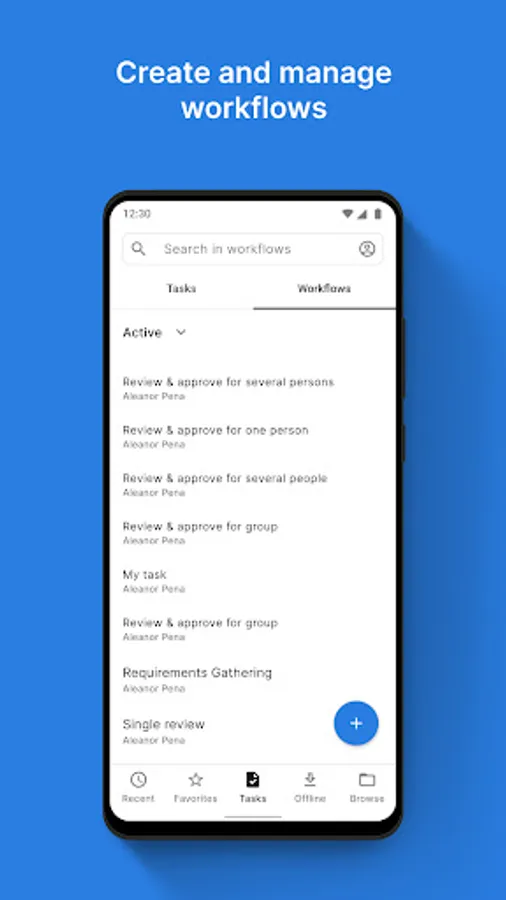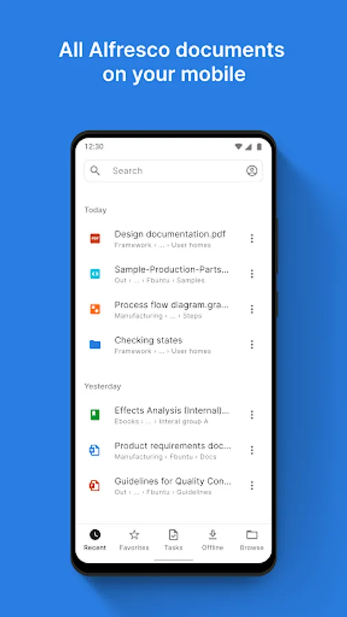 The Alfresco Mobile Workspace enables productivity anywhere, online or offline.