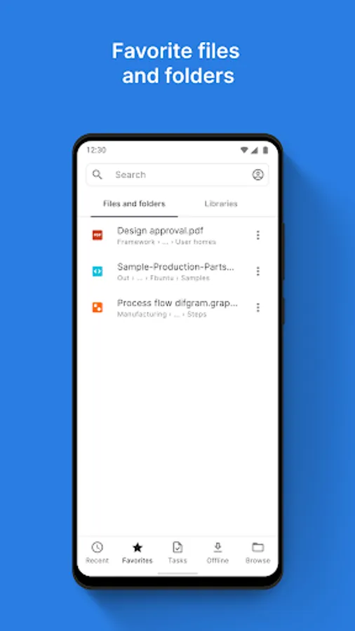 • Recent and Favorites: Mobile Workspace makes it easy to access recent content or favorite files and folders reducing the need to searches for content. Easily maintain favorites from the Digital Workspace and then access that content in the field.