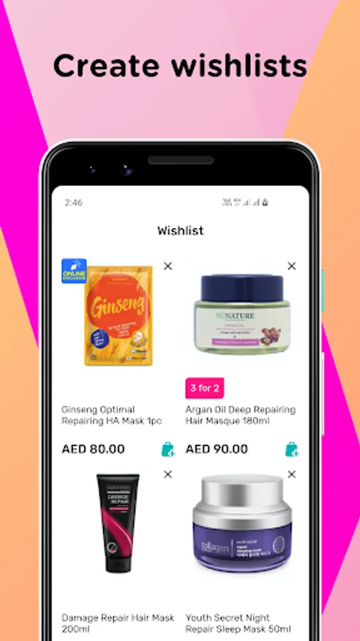 • Save all the products you love in your wishlist by simply tapping on the heart icon