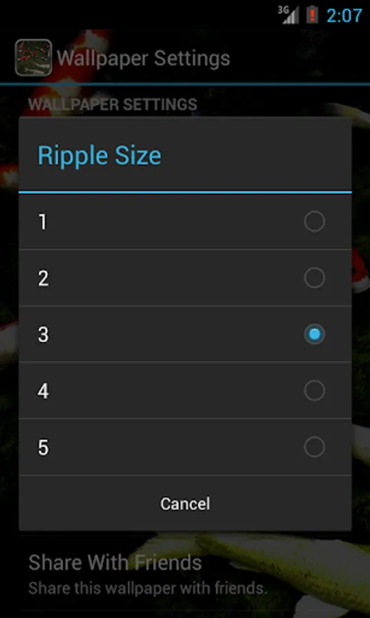 You can select ripple size and enable/disable accelerometer and bubbles.