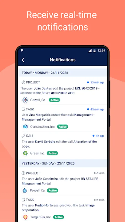 • Time tracking by task, project, deal, and more effective management of permissions, by department or collaborator