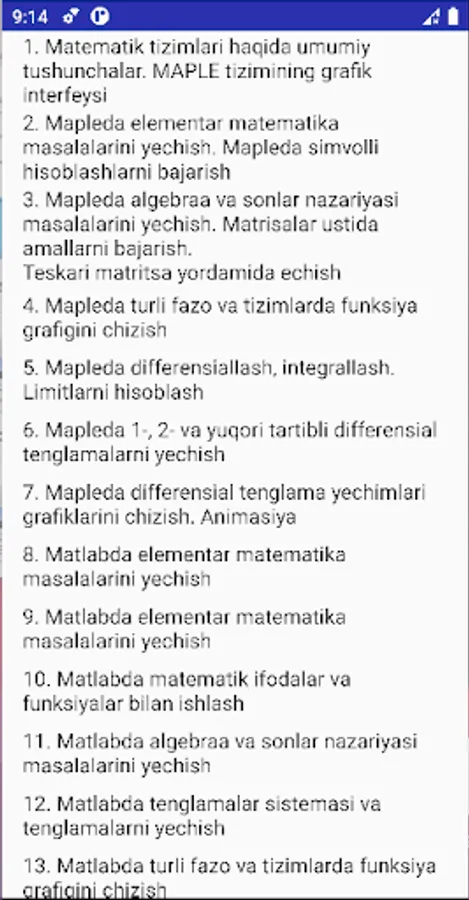 Mutaxassislik sohasiga tegishli masalalarni yechishda MatLAB va Maple kabi matematik paketlardan foydalanish asoslarini shakllantirish.