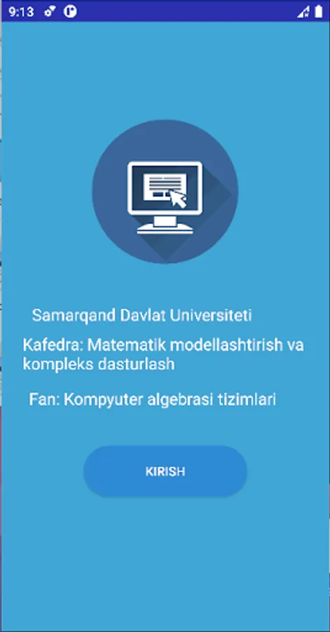 Fizika, algebra, differensial tenglamalar, matematik fizika tenglamalari, hisoblash usullari, matematik modellashtirish masalalarini kompyuter yordamida ishlash ko`nikmalari shakllantirish iborat.