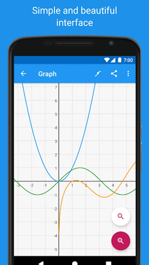 Algeo is the most beautiful scientific graphing calculator available on the Play Store. It's fast and powerful and you'll never have to carry around a large physical TI calculator anymore. The intuitive interface shows your drawn functions as you would write them on paper rather than squeezing everything on a single line. And you don't need an internet connection unlike other graphing calculators, it works offline as well! Useful for calculus, physics or to solve those x+y equations.