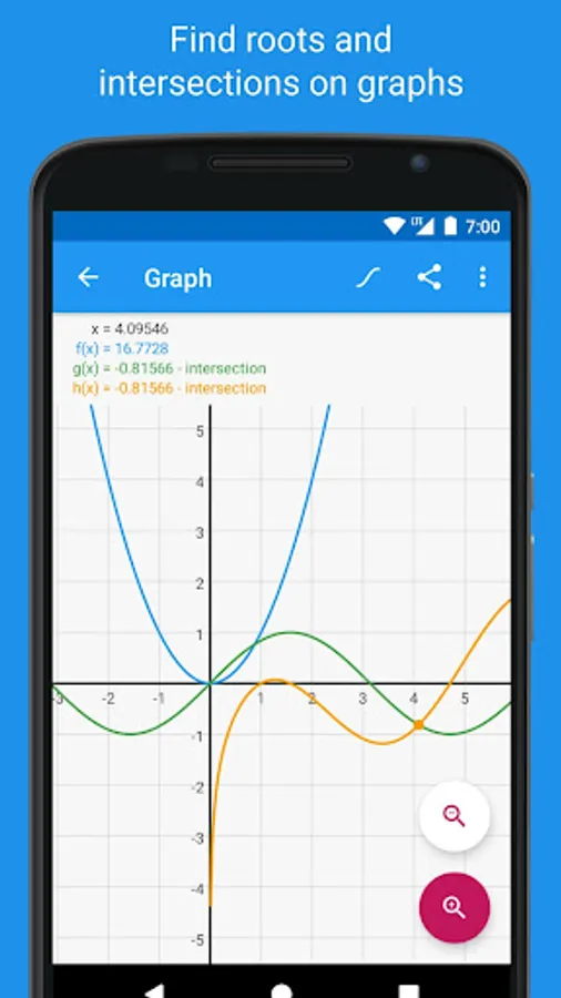 This free app is packed with more features than a big TI 84 graphing calculator. Solve your homework with Algeo: draw functions, find intersections and show a table of values of the functions with an easy to use interface.