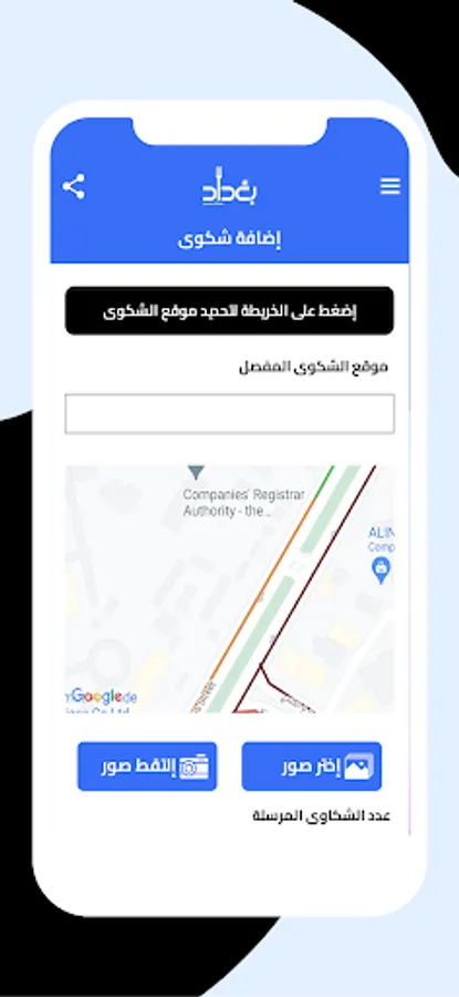 Through the Baghdad Citizen Voice application, you can send the geographical location of the complaint, so that the Baghdad Municipality can locate the complaint and resolve it as soon as possible.