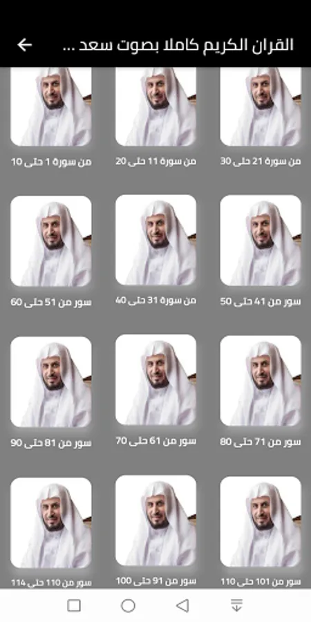 تستطيع الان عزيزي المستخدم سماع القران الكريم كاملا بصوت سعد الغامدي من خلال تطبيق يحتوي عل العديد من المميزات.