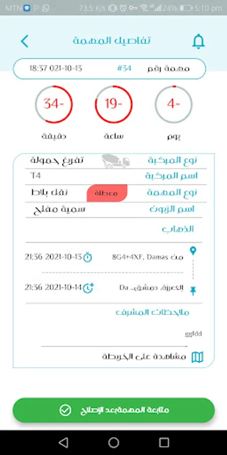 The application makes drivers happy to keep track of their work with the management by using the latest technologies of location tracking, task management and performance evaluation with the aim of improving the driver's performance and evaluating his work.