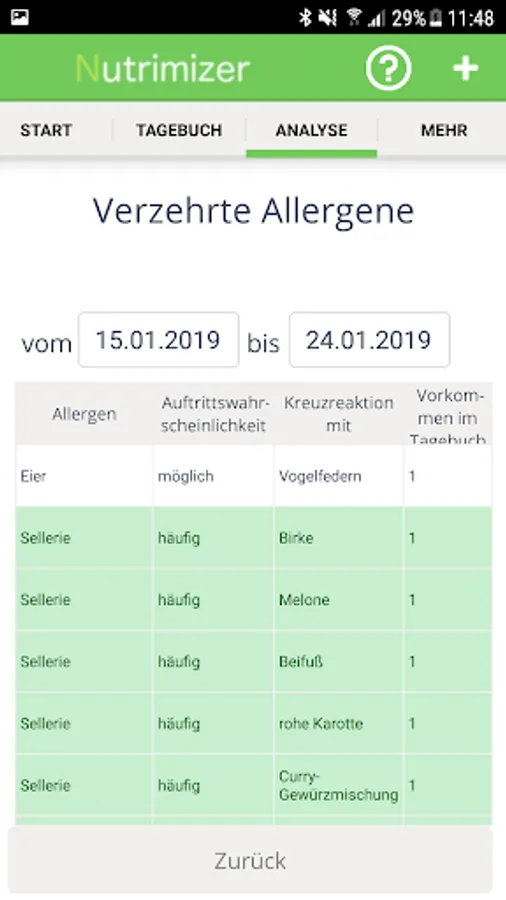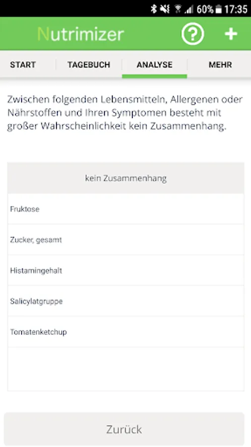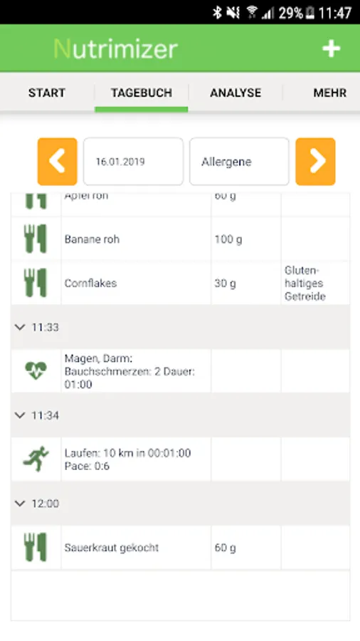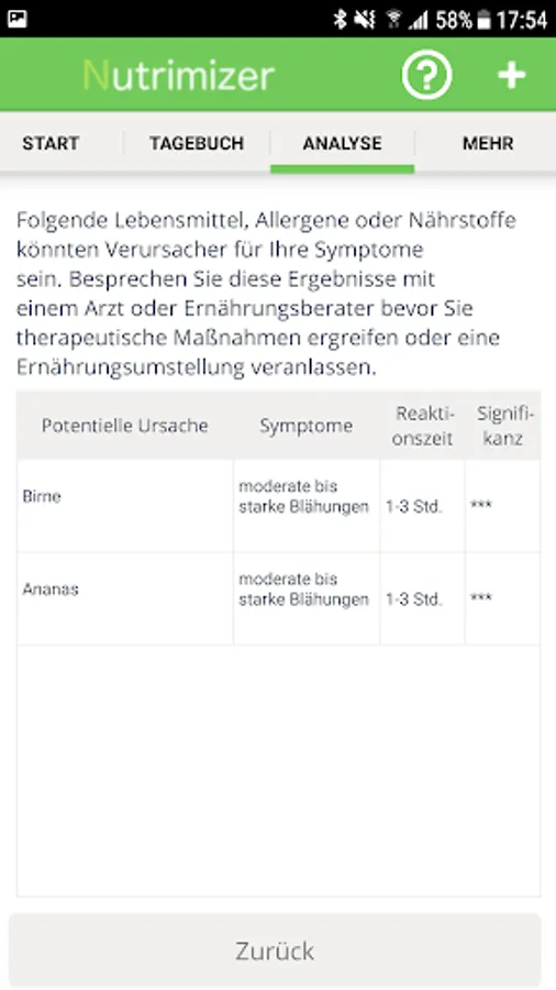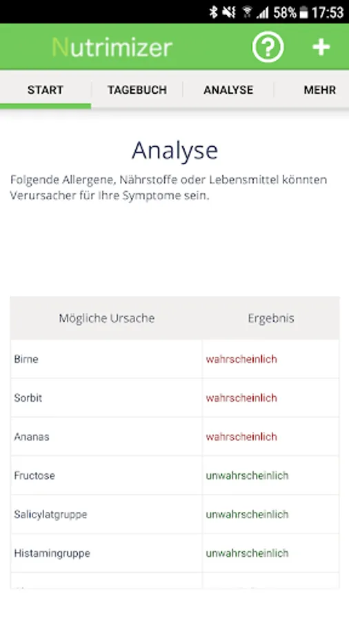 + Nutrimizer analyzes your journal and shows you possible food intolerances and allergies.