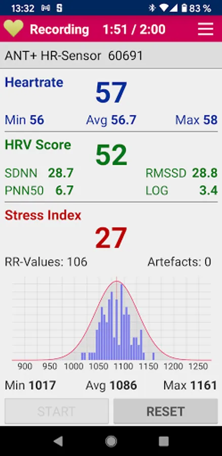 reads data from a BLUETOOTH or ANT+ heartrate sensor for analyzing the heartrate variability. The app computes and displays most of the well-known statistical values used in HRV analysis. Furthermore a stress index is determined using the method of Baevsky.