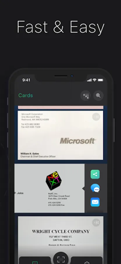 The simplest and the most advanced modernization of the management and operation of business cards by replacing the old and impractical desktop rotary file of paper business cards invented in the 1940s where over time the business cards get damaged, stained, dusty, corrugated... Already, with this App, all the User’s business cards will be flawless and shareable without health risk, forever.