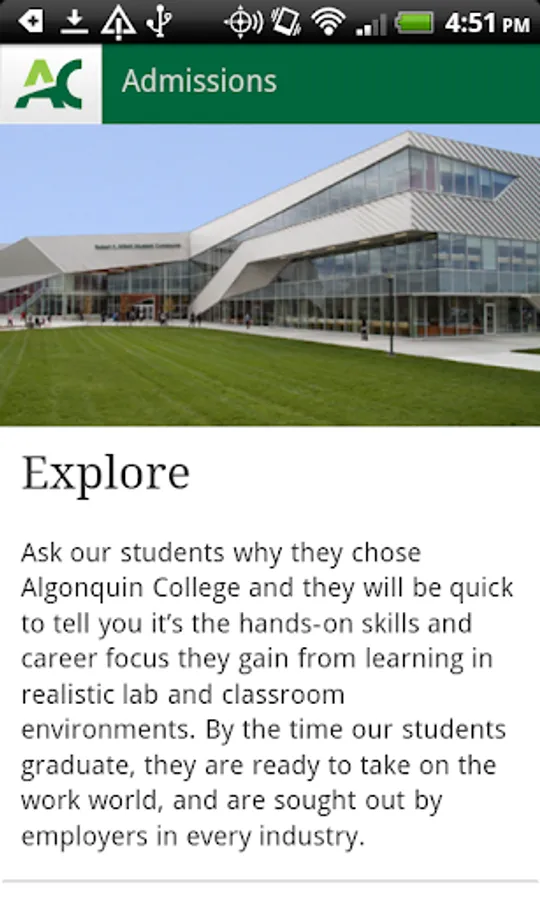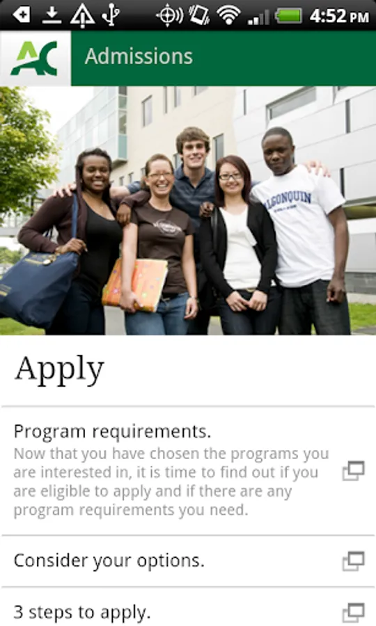 The Admissions App gives future students of Algonquin College a fast and simple way to access the information they need to enroll in their chosen programs.